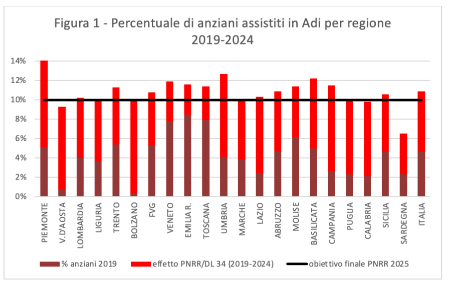 Il monitoraggio al 2024 sul Recovery Plan parla chiaro: l’obiettivo della Missione “Salute” – Investimento “Casa come primo luogo di cura” è stato centrato da tutte le regioni, e molte hanno già superato il target previsto per il 2025.